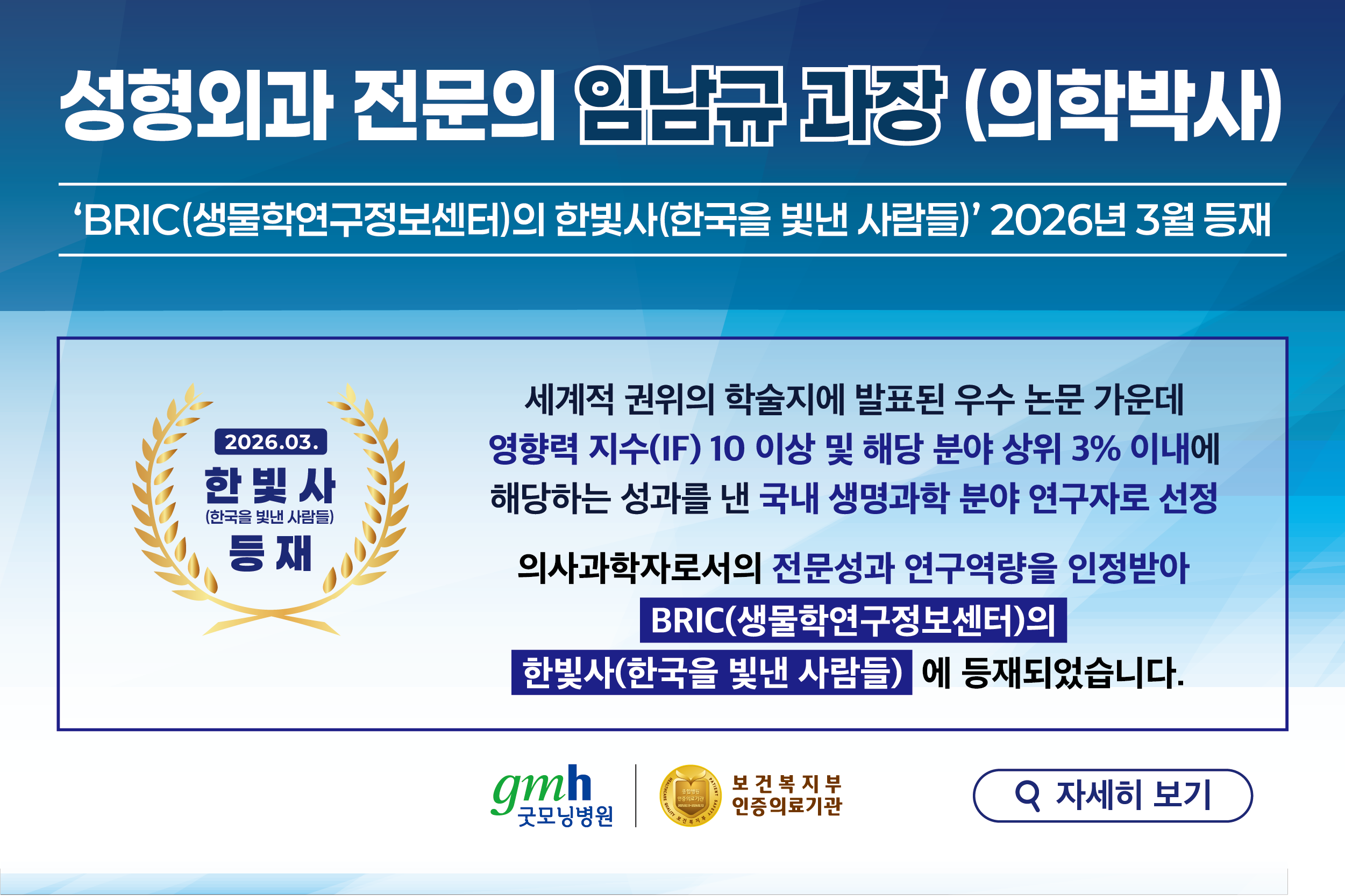 굿모닝병원 성형외과 임남규 과장(성형외과 전문의, 의학박사), ‘한빛사(한국을 빛낸 사람들